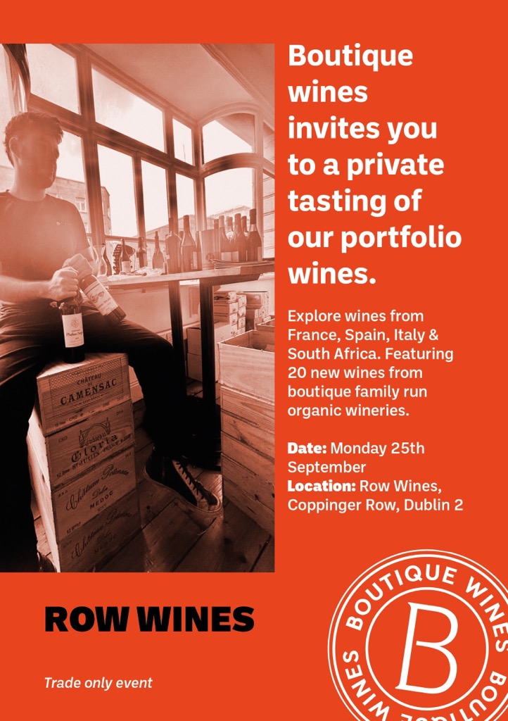 Family run importer Boutique Wines are hosting a portfolio tasting on 25th September at Dublin’s Row Wines. On the day expect organic and biodynamic wineries with an emphasis on family run businesses. The tasting is open to those working in the trade and will run from 11am – 5pm. To RSVP email Avril at avril@boutiquewines.ie