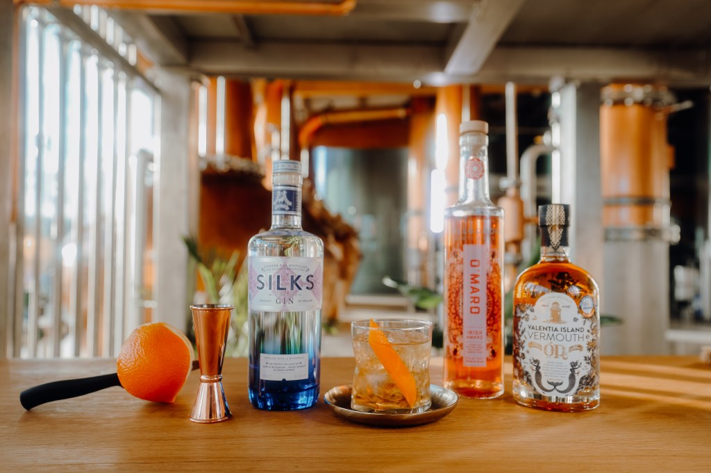 - Add the Silks Irish Gin, Stillgarden O’Maro Irish Amaro & Valentia Island Vermouth to a glass of ice.